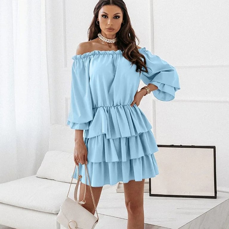 Vestido mini de verano para mujer con volantes.