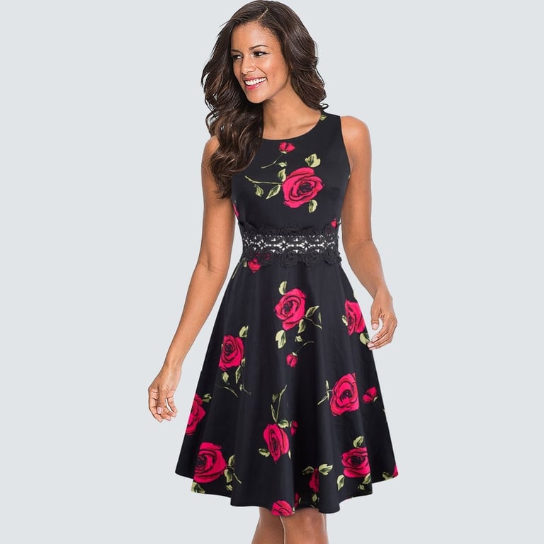 Vestido de mujer con mangas cortas y elegante escote redondo.
