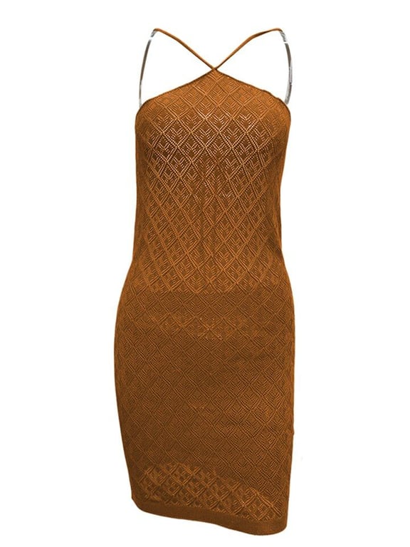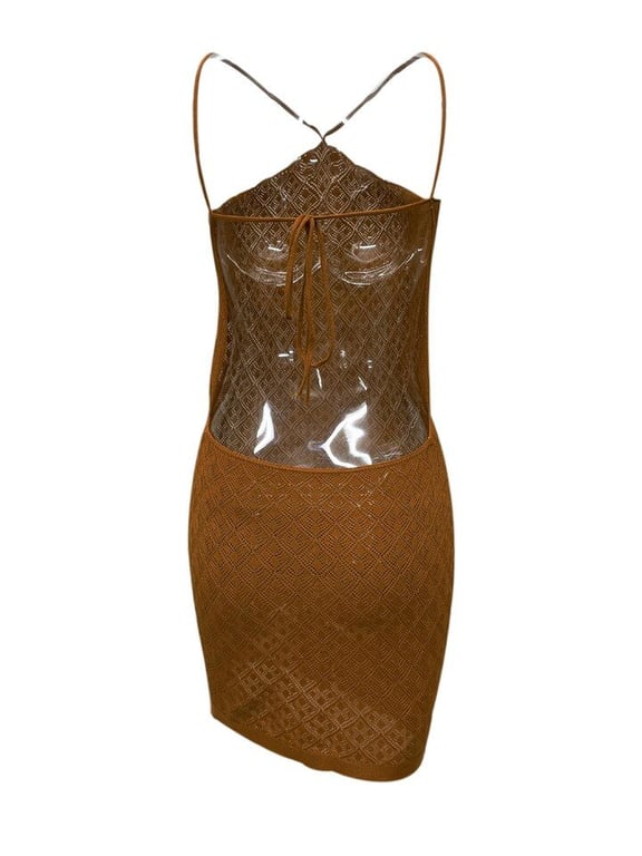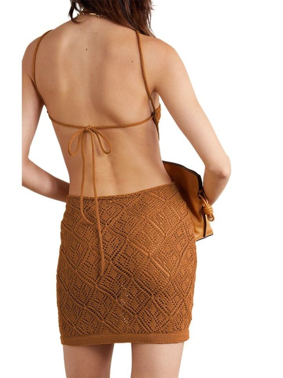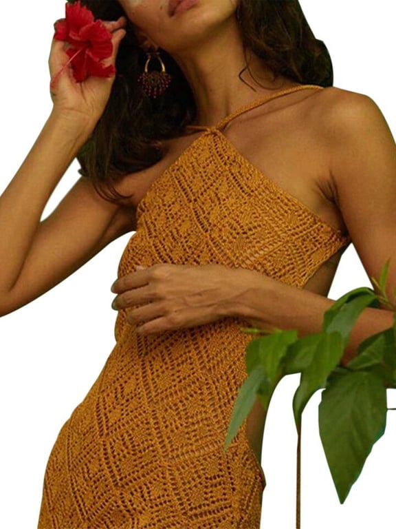 Elegante vestido de verano de ganchillo con la espalda al aire.