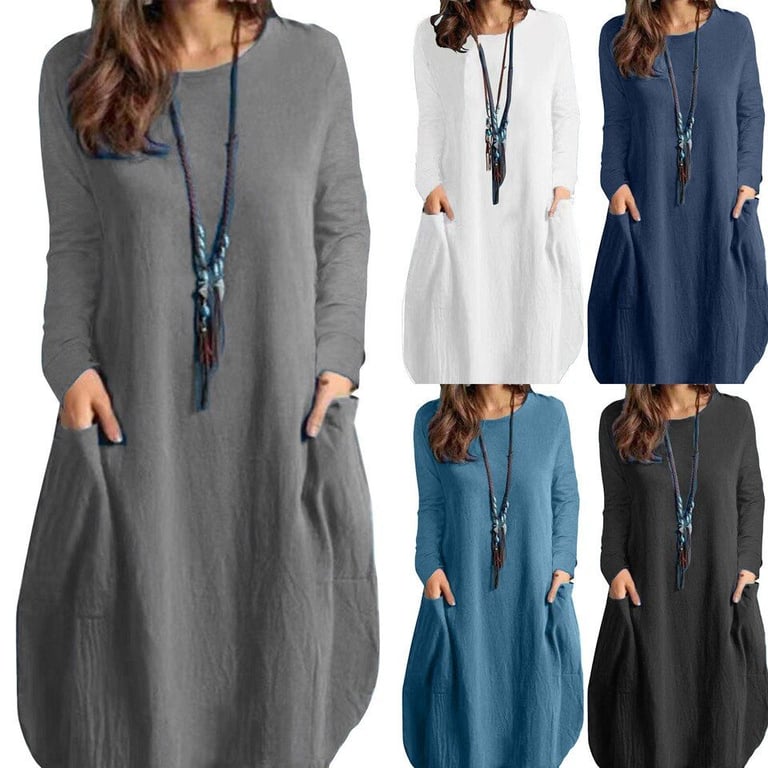 Vestido de gran tamaño con bolsillos disponible en varios colores.