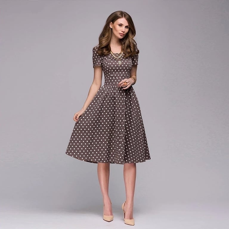 • ¡El vestido retro marrón para mujer con lunares Sophie definitivamente no debería faltar en tu armario!