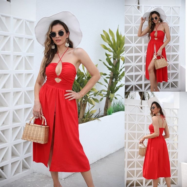 Vestido sexy para mujer con atado al cuello y alta abertura Tiffiny