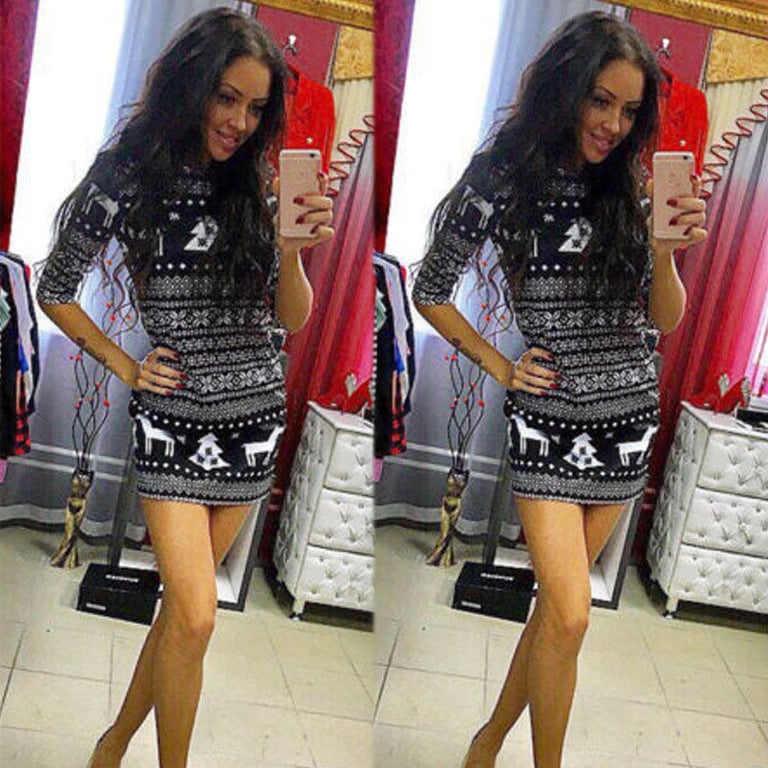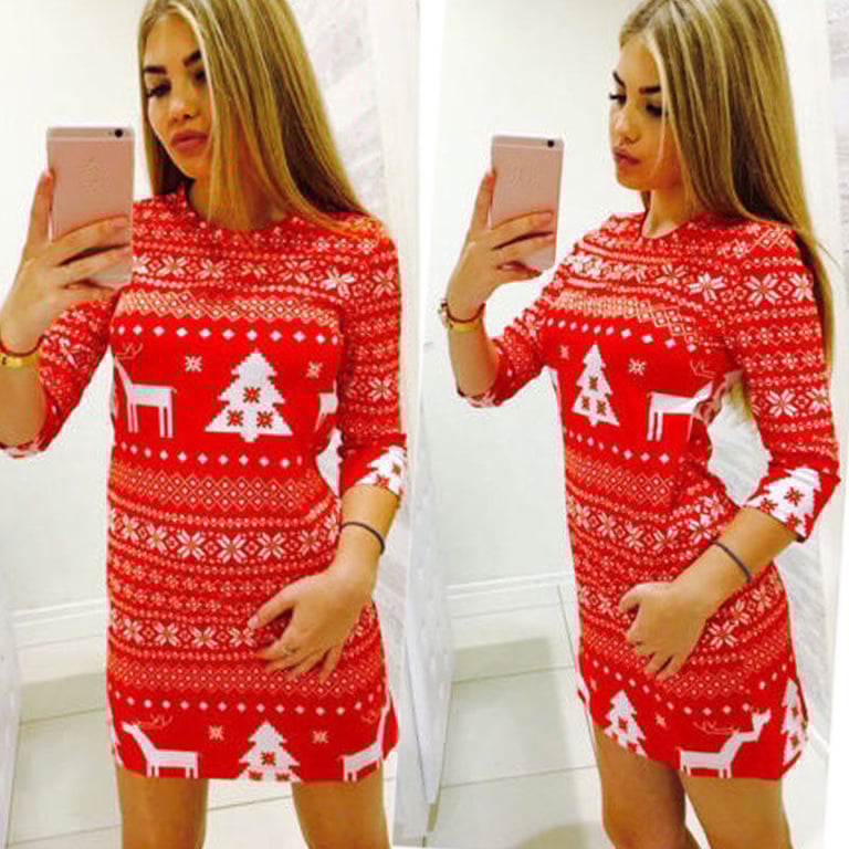 Vestido ajustado de mujer con motivo navideño.