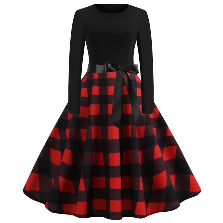 • Etiquetas: vestido vintage pin-up para mujer con cuadros rojos y lazo negro