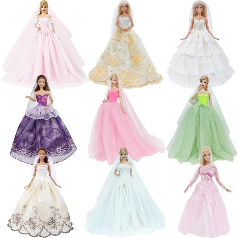 Vestidos de gala y de novia de diferentes estilos para la muñeca Barbie.
