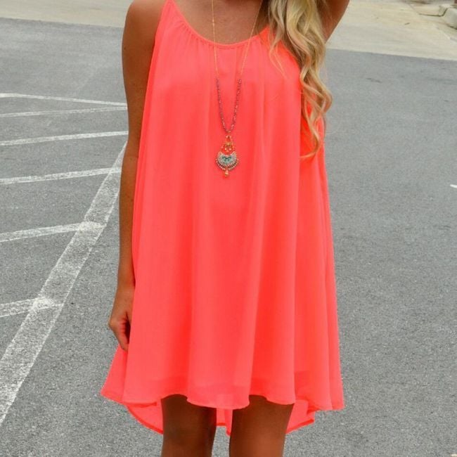 Hermosos vestidos sueltos para el verano en dos colores. Los vestidos son de chiffon y son tan sueltos y ligeros que ni siquiera los sentirás puestos. Son perfectos como vestidos sobre el traje de baño o vestidos sueltos en los calurosos días de verano.