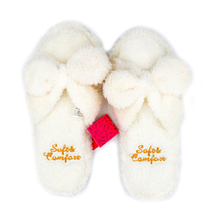 Zapatillas de casa cálidas para mujer con lazo.