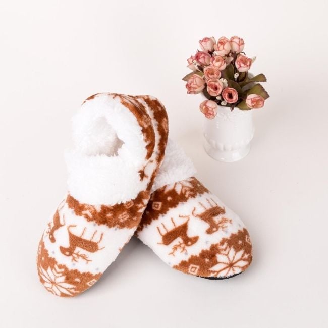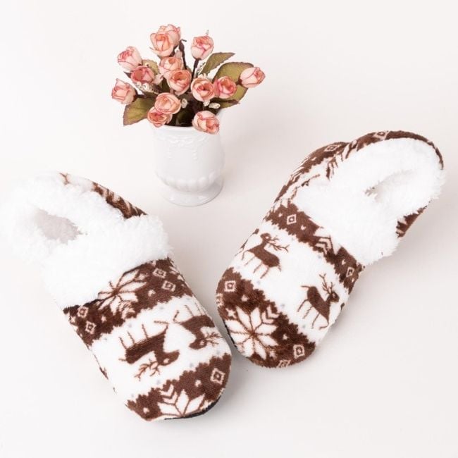Las zapatillas de casa cálidas con motivo navideño mantendrán sus pies bien calentitos.