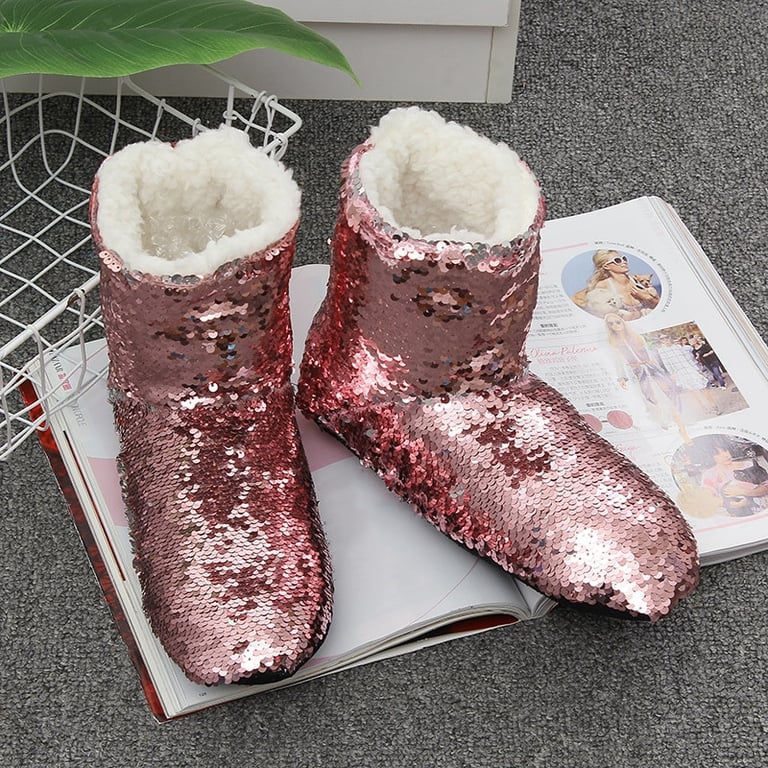 Zapatillas de casa para mujer con lentejuelas Velenoisa - rosas