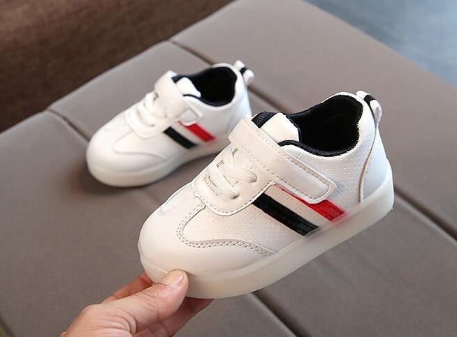 Las zapatillas son suaves, tienen luces LED en la suela y se cierran con velcro.