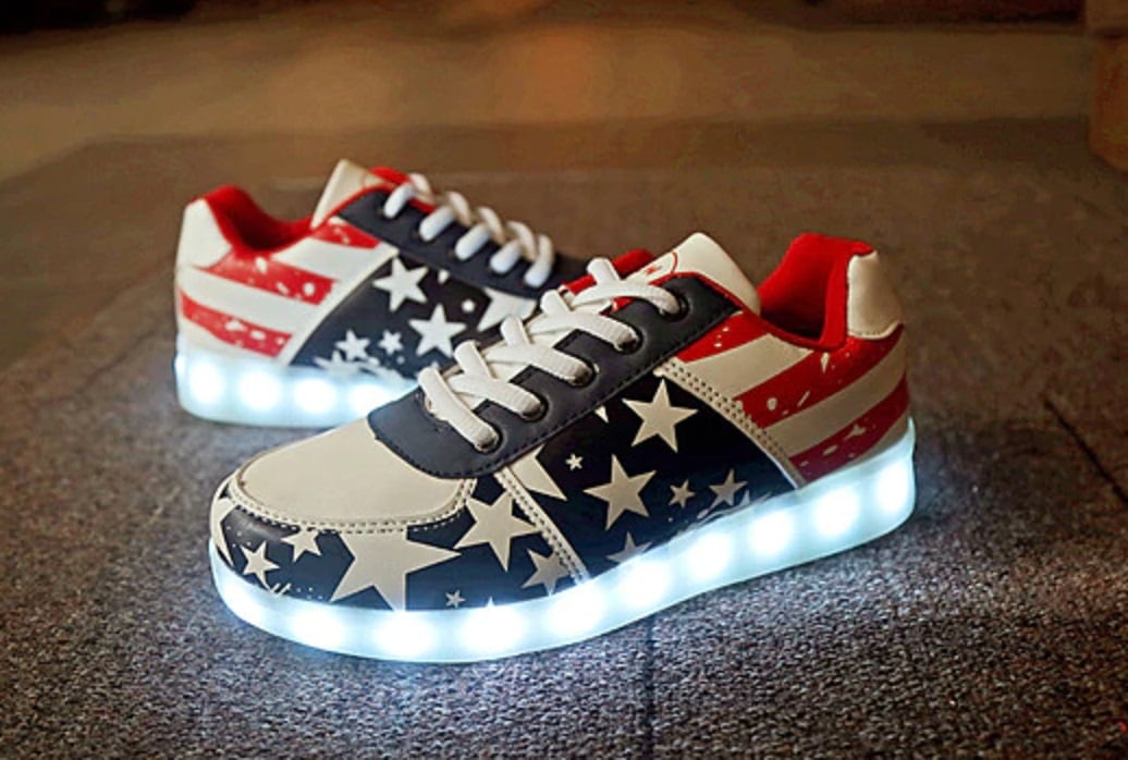 Las zapatillas tienen una suela que brilla y cambia de color.