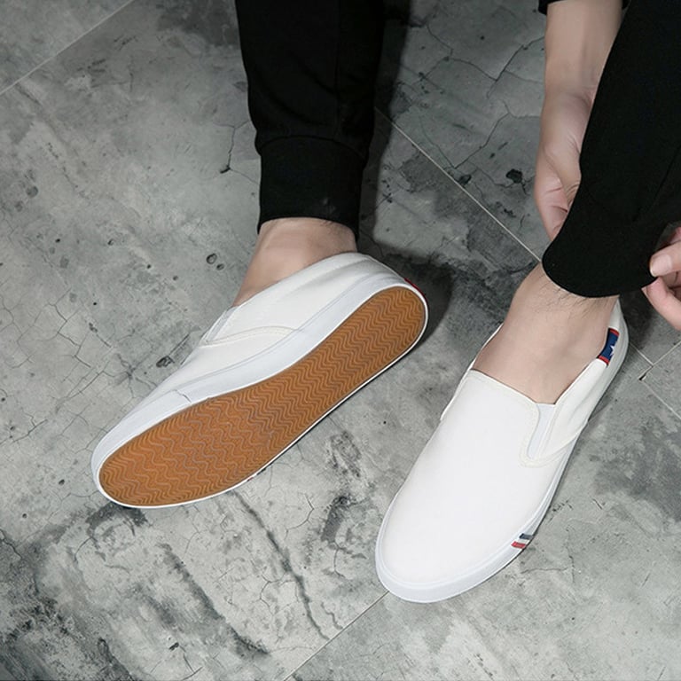 Zapatillas slip-on para hombre con punta redonda y talón firme. Suela de goma plana. Disponibles en varias opciones de color.