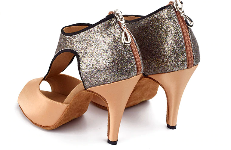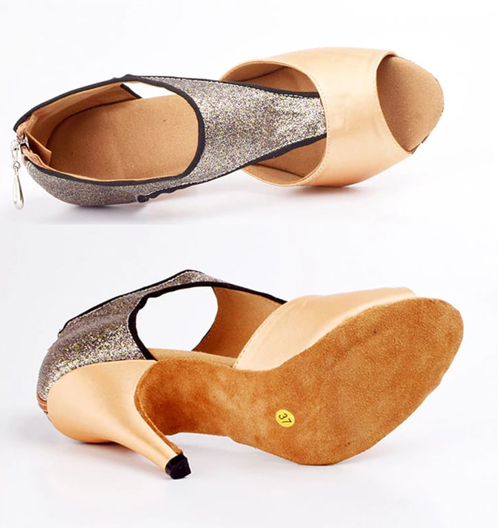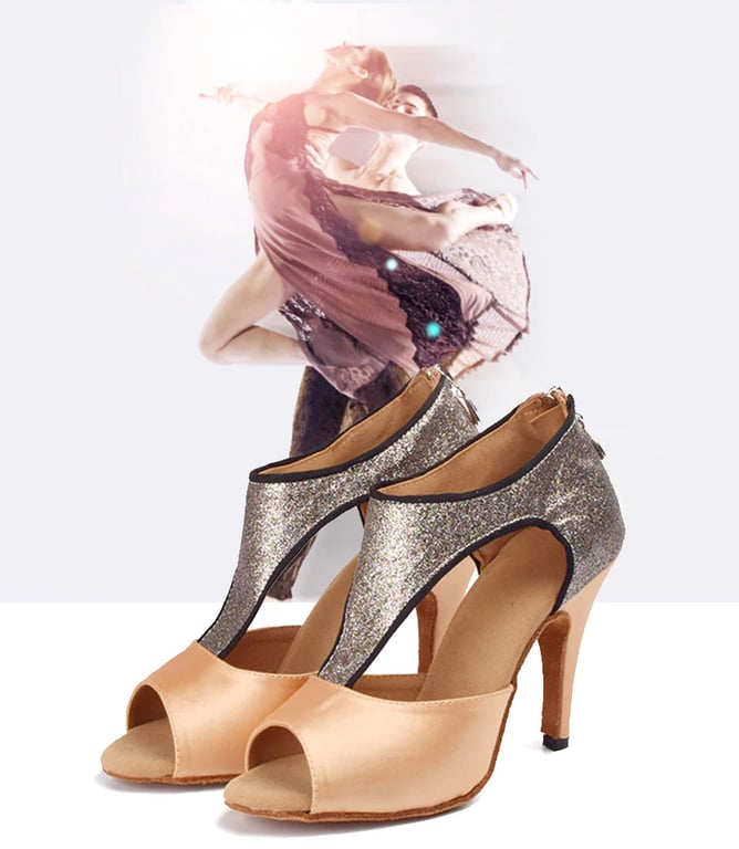 Estos elegantes zapatos de baile con purpurina son muy cómodos.