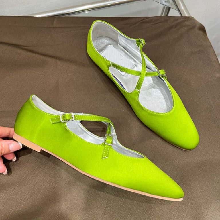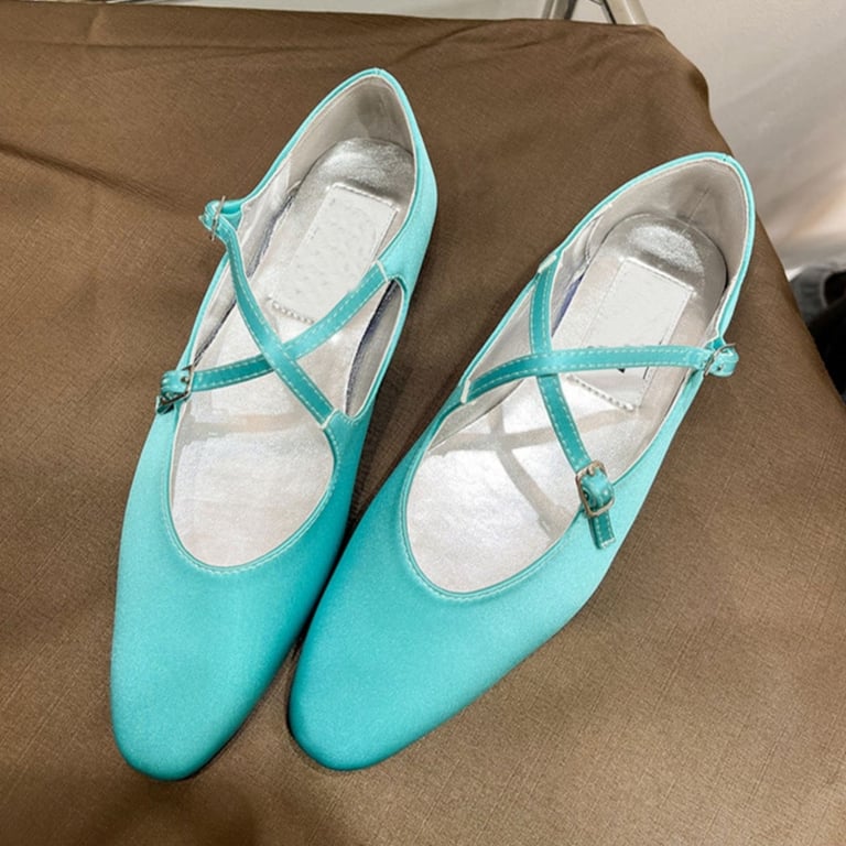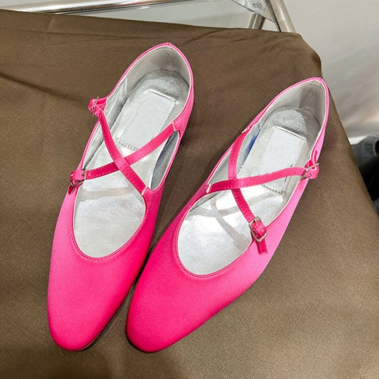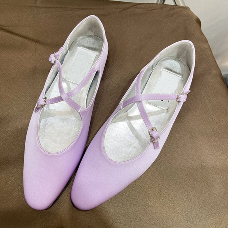Zapatos de ballet de moda para mujer con punta redonda y hebillas.