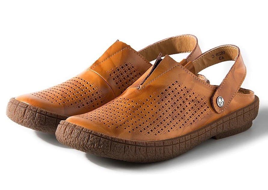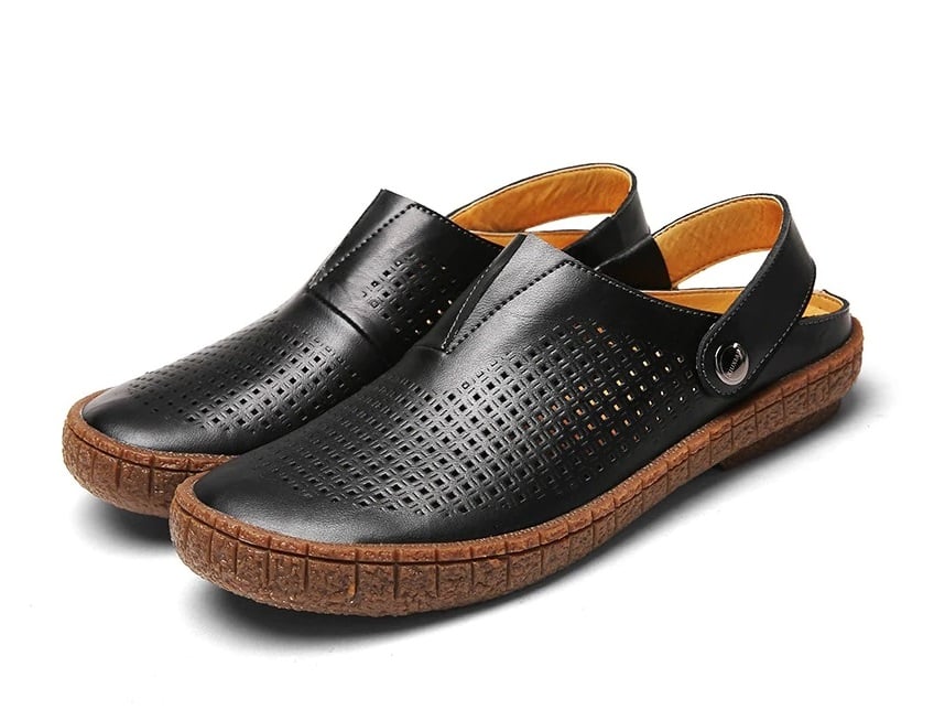 Los zapatos tienen una correa giratoria que te permite convertirlos en pantuflas.