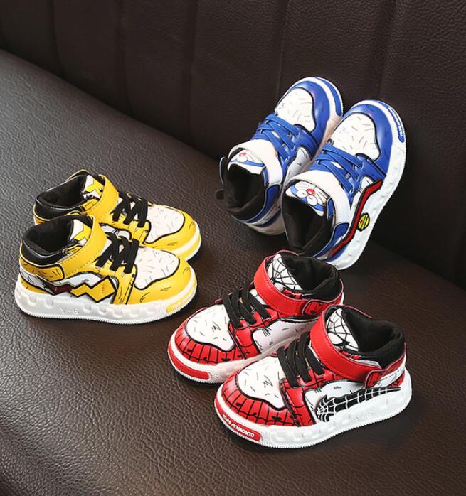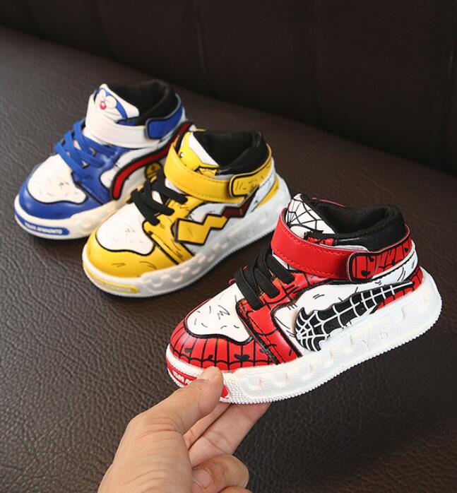 Botas de tobillo con estilo inspiradas en personajes de películas infantiles, como Spider-man o Pikachu. Las botas tienen suela de aire, cordones y velcro para ajustar.