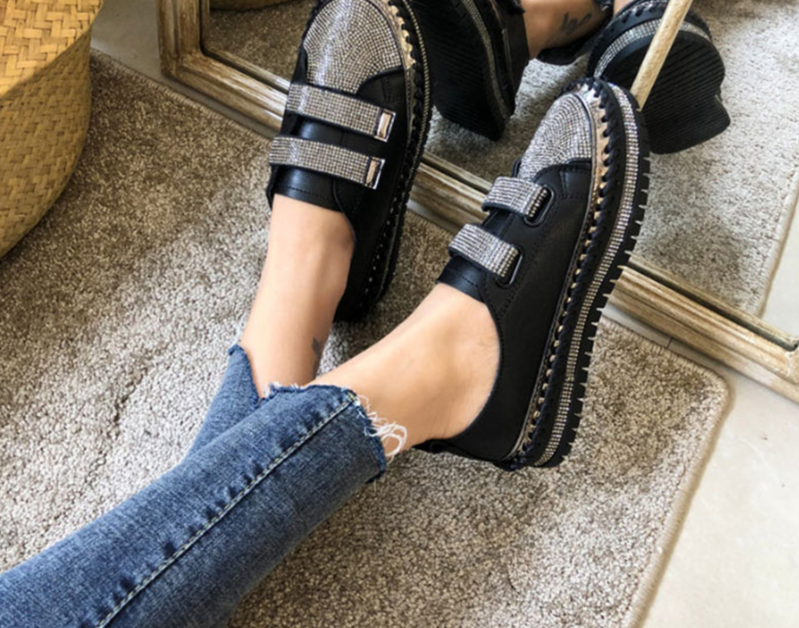 Etiquetas: zapatillas de mujer, slip on, zapatillas fáciles de poner, calzado femenino, mujeres, moda femenina, fashion, zapatillas decoradas, piedras, plataforma alta