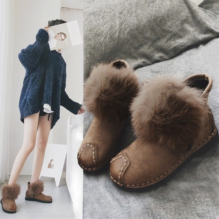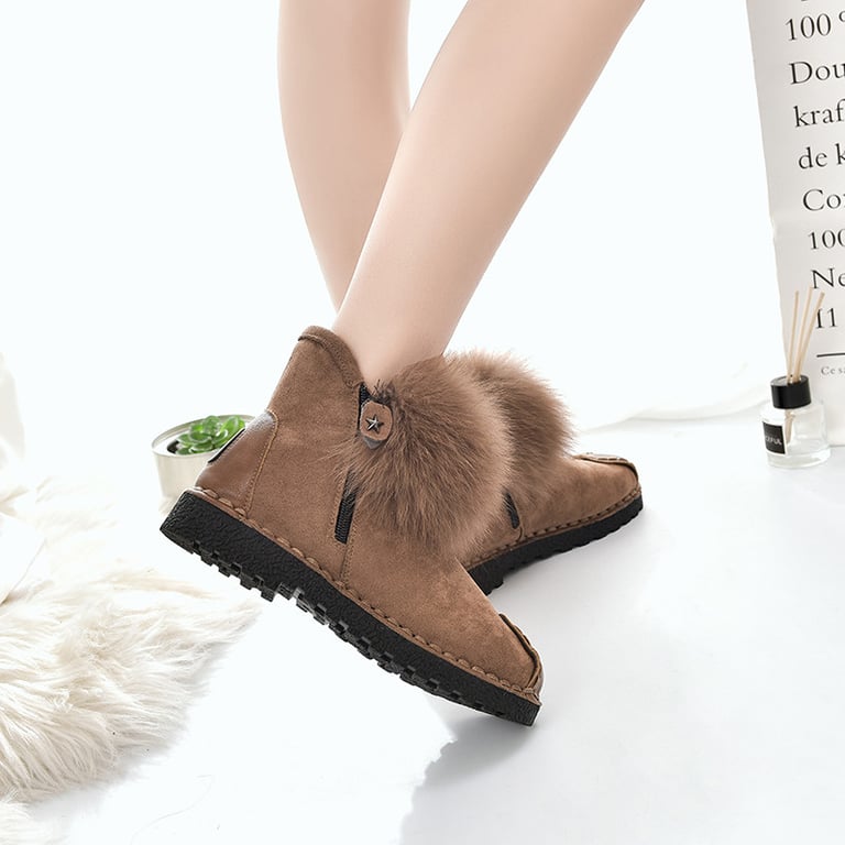 Zapatos elegantes con pelaje en un modelo atractivo.