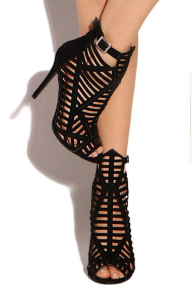 Zapatos de tacón de mujer de otoño con tiras negras
