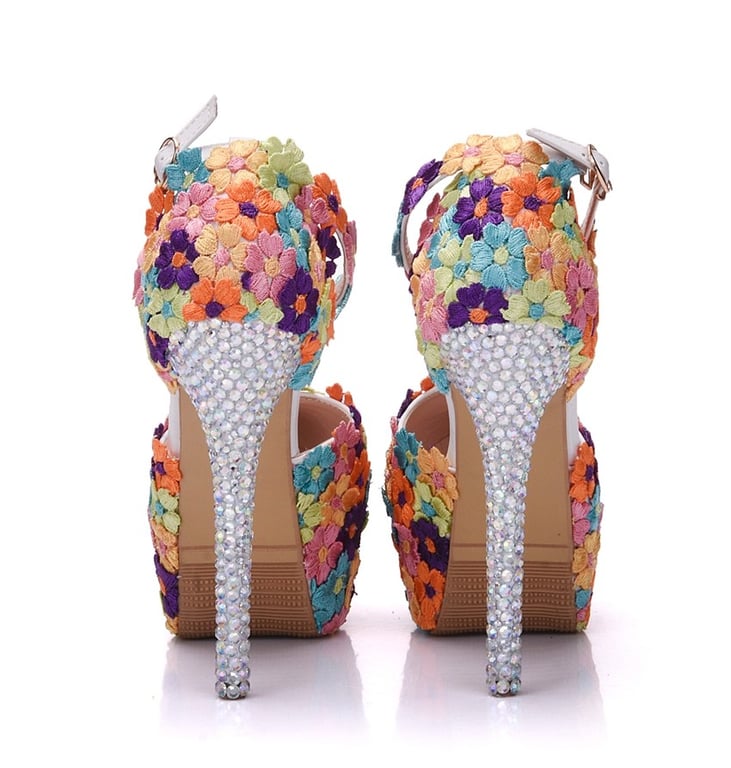 Sea elegante con estos zapatos de tacón de colores con flores.