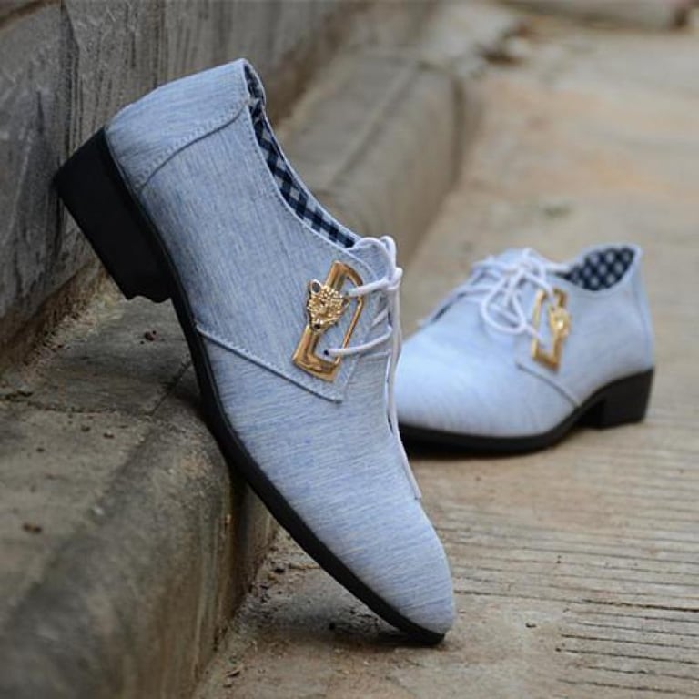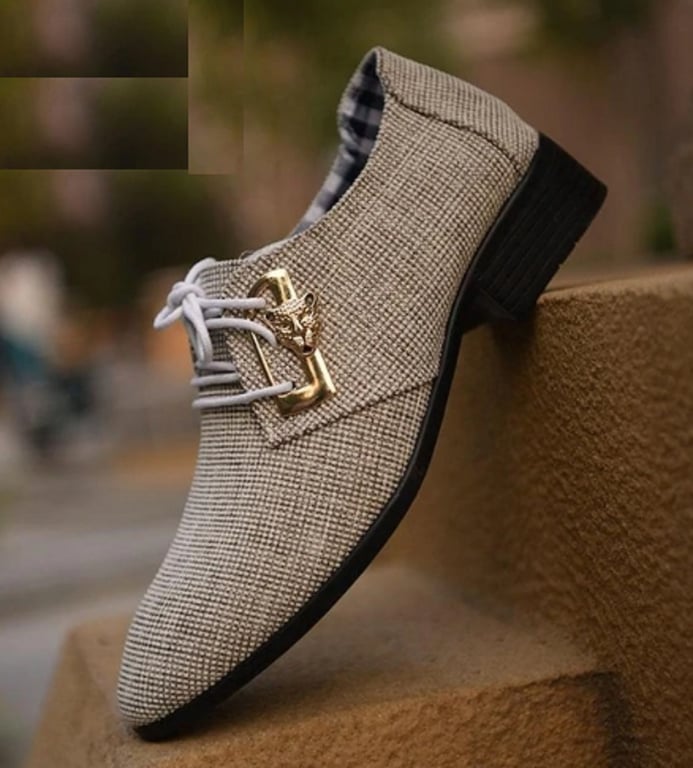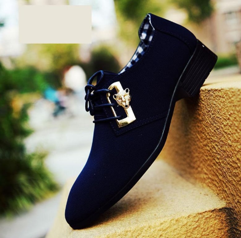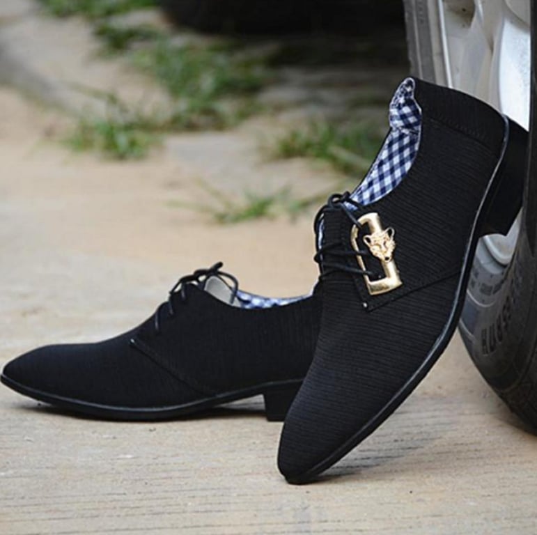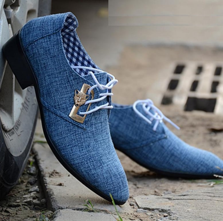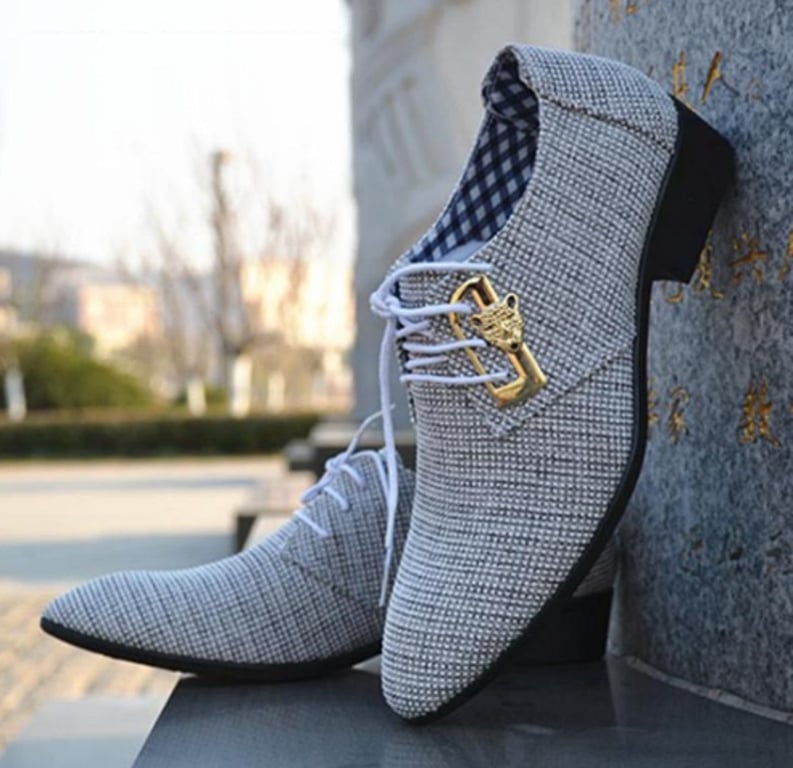 Te encantarán los zapatos de tela para hombre con adornos y un pequeño tacón.