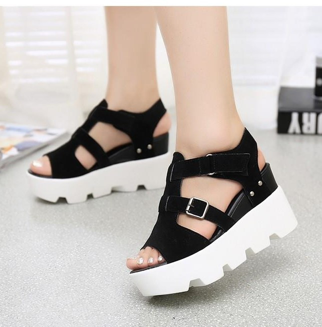 Sandalias de moda con plataforma. Zapatos tipo gladiador de color negro.