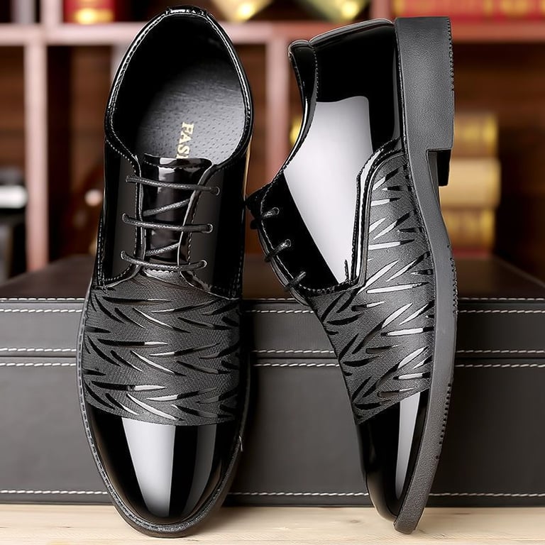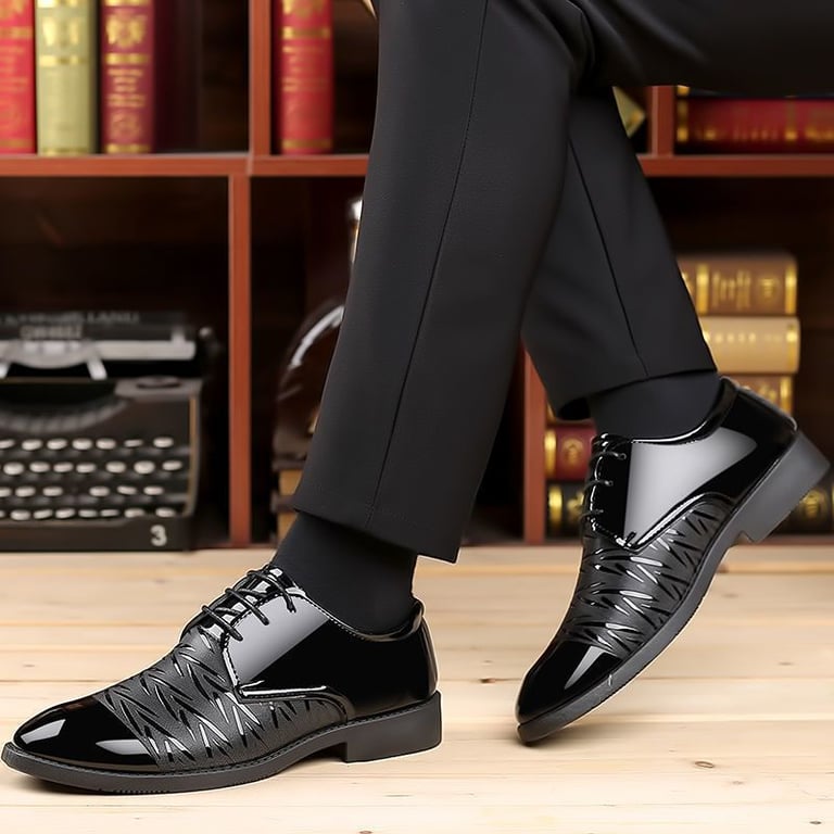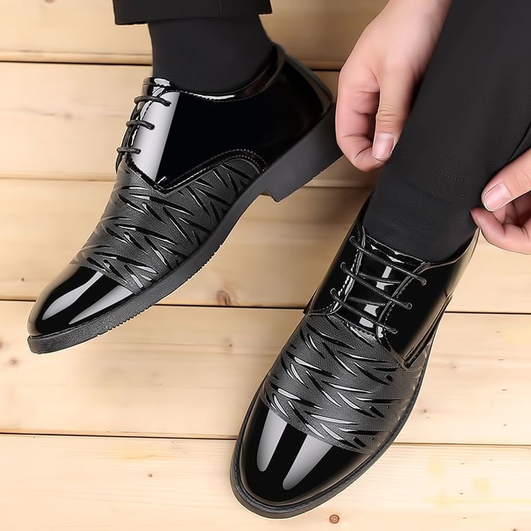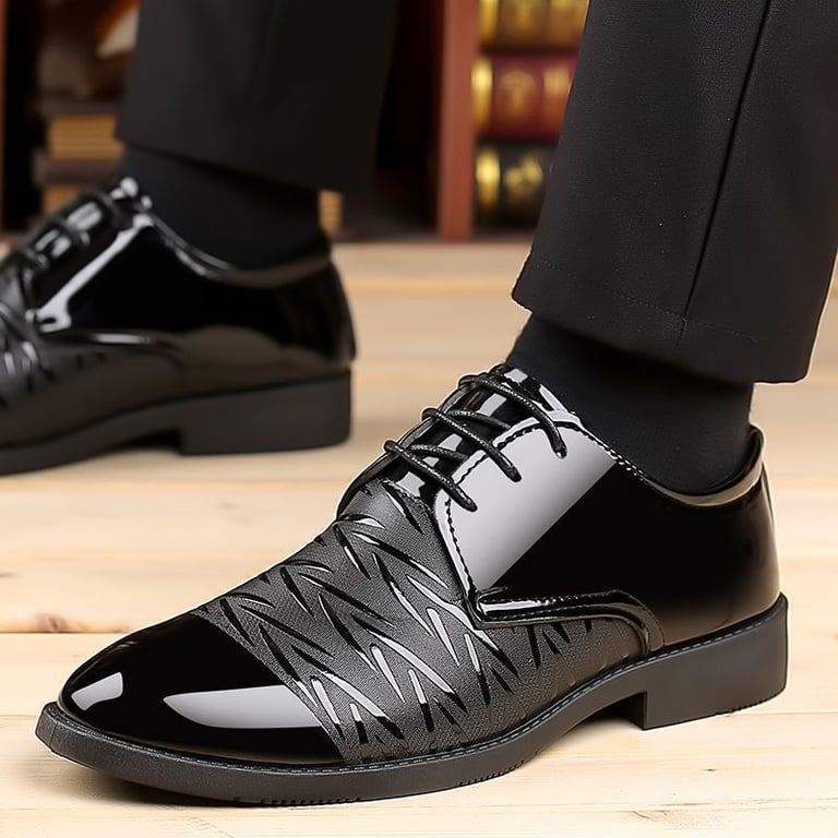 Zapatos de vestir lacados, complementados con un detalle interesante.