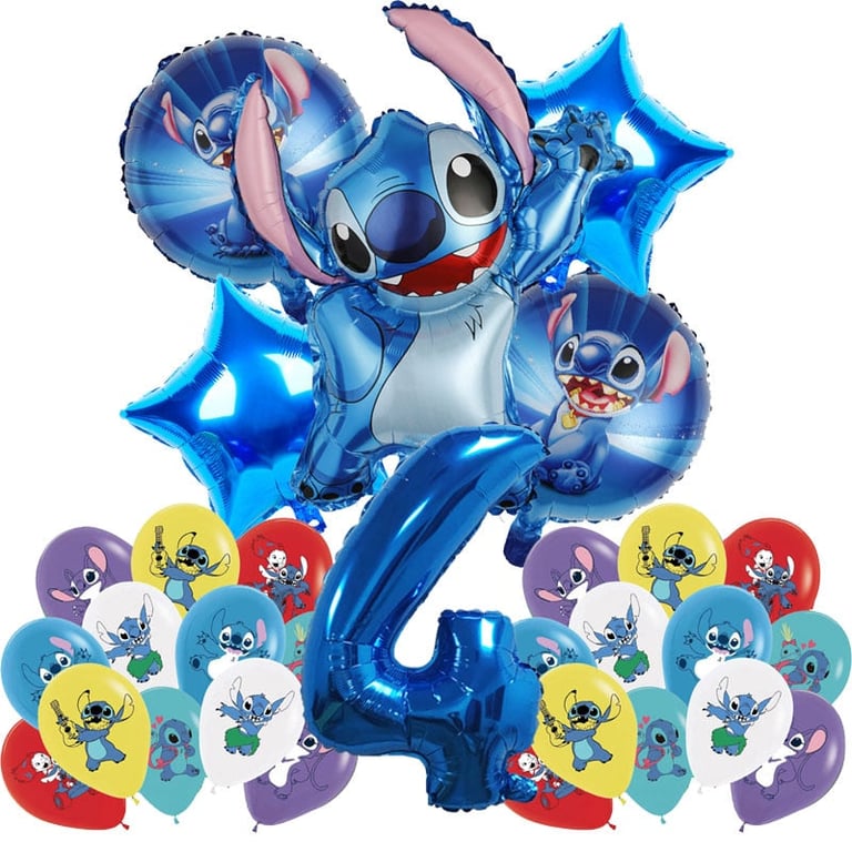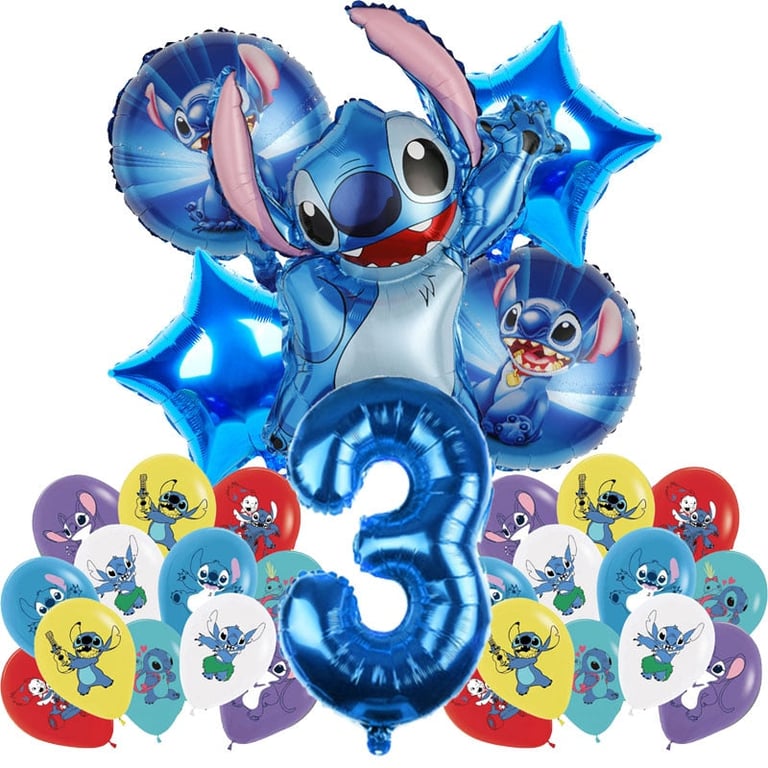 Gran conjunto de globos con el número de cumpleaños de Lilo y Stitch.