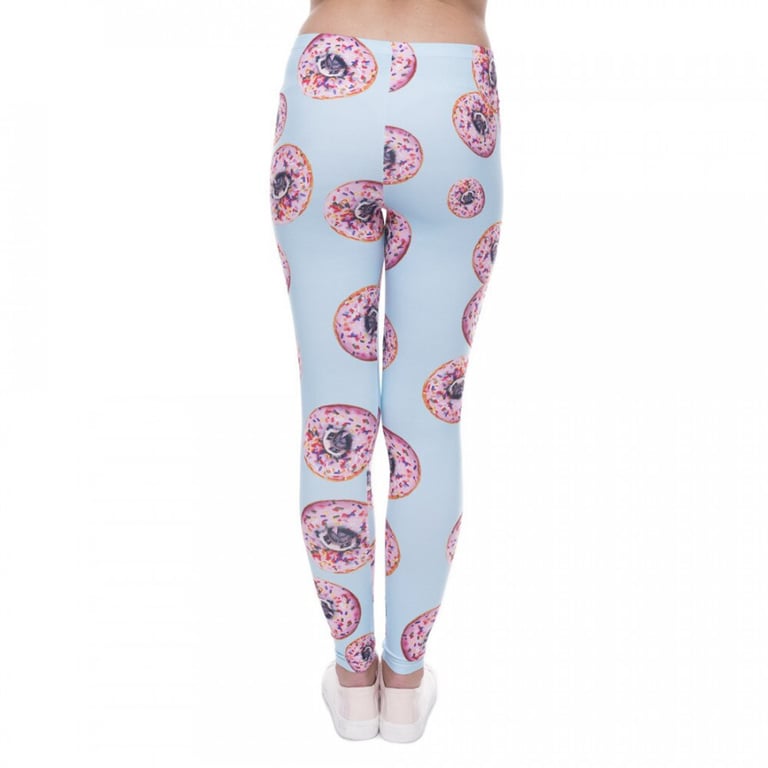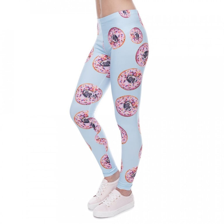Leggings para mujer con cintura alta elástica. Pantalones largos y ajustados. Estampado a todo color. Diseño con donuts.