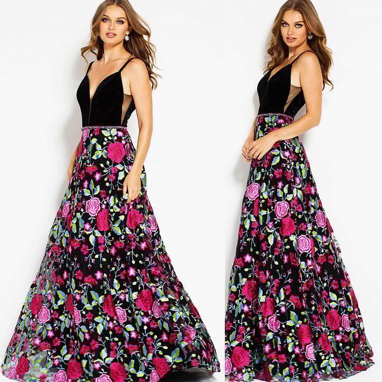 • color: negro, patrón floral