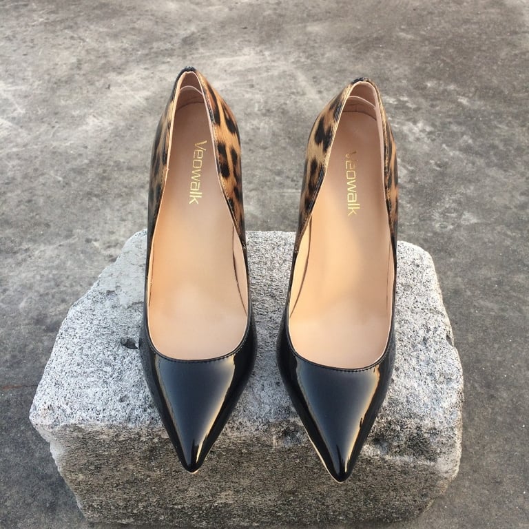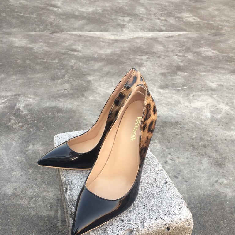 Póntete estos elegantes zapatos de tacón con estampado de leopardo.